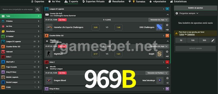 A aposta 969B oferece aos jogadores a experiência mais conveniente de apostas em eSports!